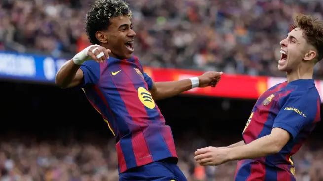 亚马尔此役状态神勇,先是在第28分钟单刀破门,第37分钟连过两人之后抽射破门,下半场则再度单刀破门。比赛的第72分钟,亚马尔被替换离场,诺坎普球迷集体起立鼓掌。