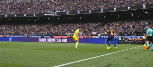 比赛开始后,2队都踢得较为沉闷,场面上并没有出现太多的机会;直到比赛强度逐渐成型,巴萨的优势便开始体现。第27分钟,费尔明中线精准卡位断球后就地送出直塞,亚马尔迅速启动反越位得球形成单刀面对门将低射远角打破僵局,1:0!